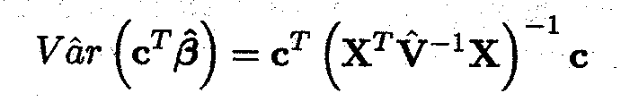 where the restricted maximum likelihood estimates of the variance components are substituted into V to obtain V. Let