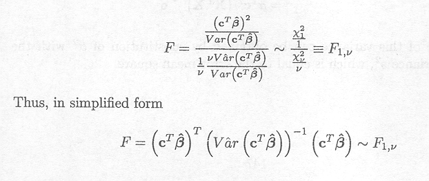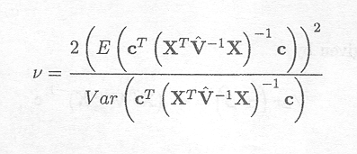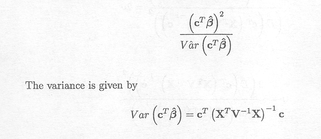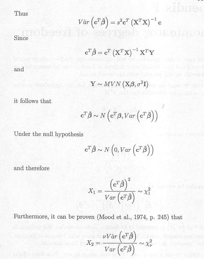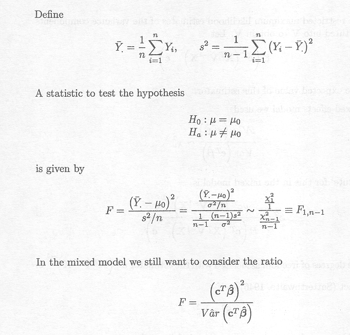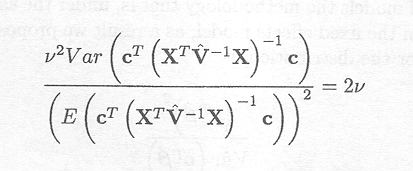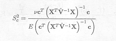 However, due to the more complicated structure of Var (cT) and Var (cT) the denominator degrees of freedom in this ratio is more complicated. In fact we mimic for mixed models the methodology that is, under the assumptions of normality, correct in the fixed effects model; as a result we propose an approximate F-distribution for the distribution of