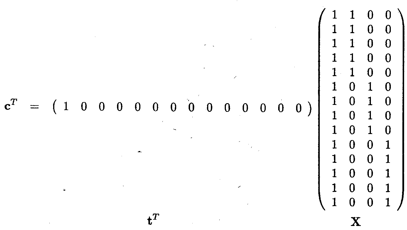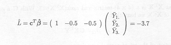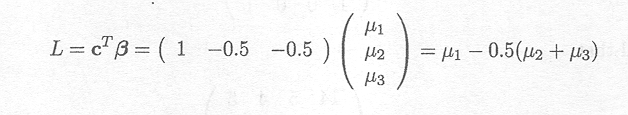 Assume, for instance, in our example, that we want to estimate the difference between the low dose and the average of the medium and high doses. The vector product CTß is then given by