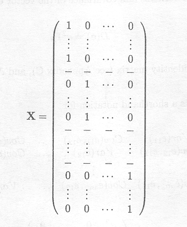X is called the design matrix; the zero and one entries are called dummy variables.