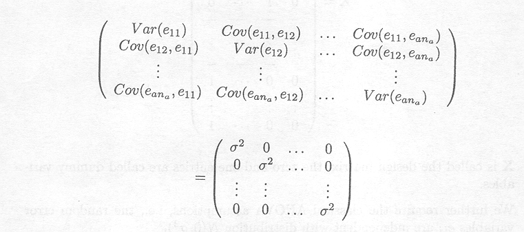 Furthermore, the variance and covariance of the vector e can be rewritten as
