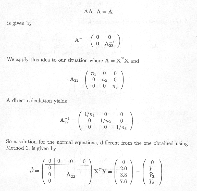 . 1, say. This method is often applied in statistical programs. However, here we will consider the general case of using a generalised inverse of XTX.