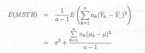 Ykl = µ + tk + ekl, k = 1, ..., a; l = 1, ..., nk