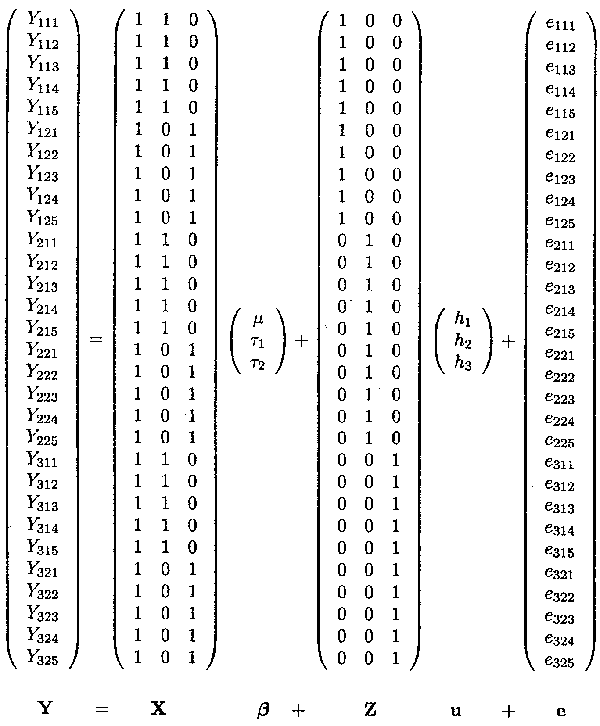 with YT = (Yll,Y12,Y13,Y14,Y15,Y21,Y22,Y23,Y24,Y31,Y32,Y33,Y34,Y35)