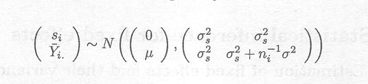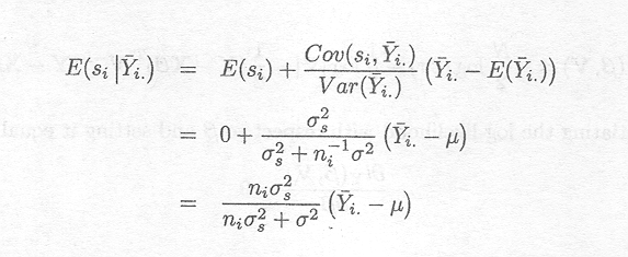 In Section 2.4 it is shown how variance components, which correspond to the variation associated with the random effects factor, can be estimated in the mixed model framework by restricted maximum likelihood (REML), and how the individual effect of a level of a random effects factor can be predicted by the method of best linear unbiased prediction (BLUP).