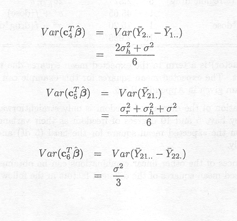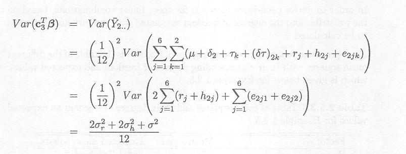 The variances of the other linear combinations can be obtained by combining the expected mean squares of the different factors in the following way.