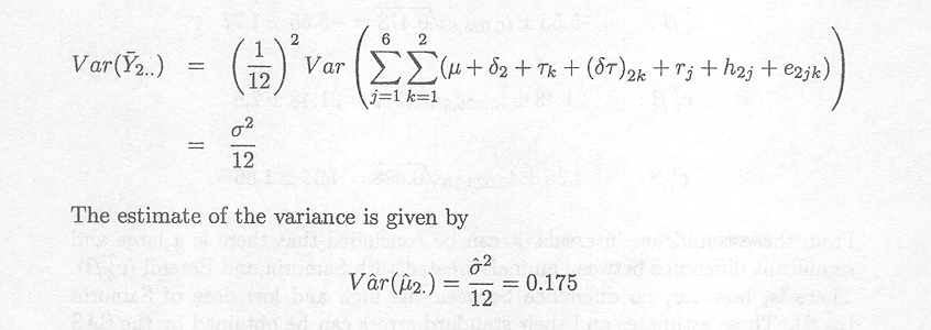The estimated standard errors for the linear combination µ2, can be obtained by the SAS program given in Appendix B.2.8 for both the fixed effects model and the mixed model.