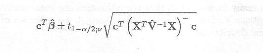 In Section 2.5 estimation of fixed effects parameters and linear combinations thereof is explained and the distributional assumptions of these estimates are derived and used to obtain confidence intervals.